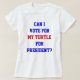 Camiseta divertida de la política de las tortugas. ¡A cualquiera que se desanime con el gobierno estadounidense le encantará esta camisa! El gracioso texto político es "¿PUEDO VOTAR POR MI TORTUGA PARA PRESIDENTE?".