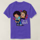 El color es muy bonito al natural, como la foto. El tejido es suave y de buena calidad. Sin defectos en el tintado, ni hilos sueltos o descosidos. Bien la impresión. Los bordes de las letras y el dibujo son nítidos, y el color contrasta muy bien con el de la camiseta.