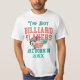 Presentación de una camiseta de personalizable para jugadores de billar. Añade un año de nacimiento al frente de la camisa, y un mensaje corto al reverso. Esto sería un gran regalo para cualquier ocasión.