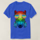 El color es muy bonito al natural, como la foto. El tejido es suave y de buena calidad. Sin defectos en el tintado, ni hilos sueltos o descosidos. Bien la impresión. Los bordes de las letras y el dibujo son nítidos, y el color contrasta muy bien con el de la camiseta.