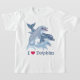La familia Cute Dolphin para nadar. Azul suave en tonos azules. El texto dice que yo, los delfines del corazón.