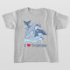 La familia Cute Dolphin para nadar. Azul suave en tonos azules. El texto dice que yo, los delfines del corazón.