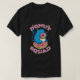 El color es muy bonito al natural, como la foto. El tejido es suave y de buena calidad. Sin defectos en el tintado, ni hilos sueltos o descosidos. Bien la impresión. Los bordes de las letras y el dibujo son nítidos, y el color contrasta muy bien con el de la camiseta.