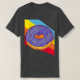 El color es muy bonito al natural, como la foto. El tejido es suave y de buena calidad. Sin defectos en el tintado, ni hilos sueltos o descosidos. Bien la impresión. Los bordes de las letras y el dibujo son nítidos, y el color contrasta muy bien con el de la camiseta.