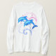 Dos delfínes lindos del salto juegan en el océano, con el cielo de la puesta del sol y las estrellas bonitos.