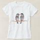 Dibujo acuarela de dos gorriones Java. Se sientan uno al lado del otro sobre un palo largo y se tocan con las puntas de sus picos.