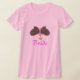 Pintura de dos mariposas marrones sentadas en una flor rosada, impresas en sus camisetas, con una novia escrita en ella. Fácilmente personalizar con un texto diferente, y puede seleccionar cualquier estilo y color de camisetas. Explorar invitaciones coincidentes; Sellos de boda; Guardar imanes de fecha, Pegatinas y postales; Sellos de Boda de monograma; Bolsas de tocador de novia y bolsas monogramadas; y Vínculos de Boda: