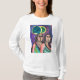 Dos mujeres bajo la luna coloridas obras de arte abstracto de IA. Una pareja racista o mejores amigos. contenido generativo