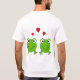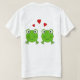 Unas par de ranas verdes lindas con los corazones rojos en un fondo blanco llano.