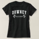 Camiseta de mujeres de Black Downey para mostrar que estás orgulloso de ser de esta hermosa ciudad. Este diseño de texto curvo de la letra muestra "Downey" en un tipo de letra con "California" y "Golden State" en elegantes fuentes de título con palmeras a ambos lados.