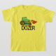 Un bulldozer de azul, naranja, rojo y verde con texto que dice "Dozer" en camisetas, sudaderas, camisetas sin mangas, camisetas sin mangas, carros, y más, perfecto para los niños que aman los grandes vehículos de construcción.