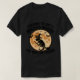 Una silueta de un dragón barbudo con un gorra de brujas vuela sobre un palo de escoba frente a una luna llena brillante, rodeada de murciélagos. Un divertido y espeluznante diseño de reptil de Halloween.
