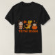 Un alegre dragón personalizado barbudo con una bufanda se levanta entre una calabaza y una bebida de otoño, rodeado de hojas de otoño y las palabras "Esta es la estación".