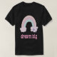 El color es muy bonito al natural, como la foto. El tejido es suave y de buena calidad. Sin defectos en el tintado, ni hilos sueltos o descosidos. Bien la impresión. Los bordes de las letras y el dibujo son nítidos, y el color contrasta muy bien con el de la camiseta.