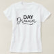 Day Dreamer presenta las palabras "Day Dreamer" (soñador del día) en sans serif modernos y el guión en negro que se ve genial en una camiseta de color claro. Perfecto para soñadores. *Tenga en cuenta que la marca de agua Zazzle que aparece en la vista previa del zoom NO aparecerá en el producto impreso final. © Tipo de novela