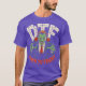 El color es muy bonito al natural, como la foto. El tejido es suave y de buena calidad. Sin defectos en el tintado, ni hilos sueltos o descosidos. Bien la impresión. Los bordes de las letras y el dibujo son nítidos, y el color contrasta muy bien con el de la camiseta.