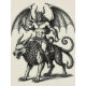 Astaroth, el Gran Duque del Infierno, se representa como una inquietante unión de intelecto e instinto. Coronado y sereno en la parte superior, pero fusionado con una forma bestial agachada en la parte inferior, la figura encarna la pereza, la tentación y la dualidad en un oscuro grabado alegórico.