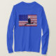 Un águila calva escanea el cielo desde su percha en una rama de árbol; superpuesto a una bandera de los Estados Unidos.