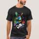 El color es muy bonito al natural, como la foto. El tejido es suave y de buena calidad. Sin defectos en el tintado, ni hilos sueltos o descosidos. Bien la impresión. Los bordes de las letras y el dibujo son nítidos, y el color contrasta muy bien con el de la camiseta.