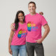 El color es muy bonito al natural, como la foto. El tejido es suave y de buena calidad. Sin defectos en el tintado, ni hilos sueltos o descosidos. Bien la impresión. Los bordes de las letras y el dibujo son nítidos, y el color contrasta muy bien con el de la camiseta.