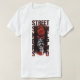 A bold and gritty streetwear illustration featuring a skeleton hand holding a flaming red rose. The design includes urban grunge textures and bold abstract typography. Perfect for fans of gothic fashion, skate culture, and edgy graphic tees.