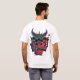 This detailed digital illustration features a pale-skinned mythical creature with large textured horns and glowing orange eyes. Set against a backdrop of bold, swirling dark smoke, the design uses heavy linework and vibrant accents to create a modern streetwear aesthetic. Ideal for fans of gothic fantasy and edgy character design