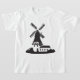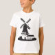 Una silueta negra de un molino de viento. Este diseño se ve realmente efectivo en esta camiseta para niños