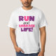 Si te gusta correr, correr 5 Ks, 10 Ks, media maratón o maratones, te encantará este colorido diseño de texto en morado y rosa que dice Correr y abrazar la vida! ¡Corre y abraza camisetas vitales, tazas, bolsas, tarjetas, pegatinas, cadenas de llaves, mousepads, estuches para iPhone, imanes y mucho más!
