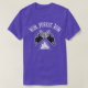 El color es muy bonito al natural, como la foto. El tejido es suave y de buena calidad. Sin defectos en el tintado, ni hilos sueltos o descosidos. Bien la impresión. Los bordes de las letras y el dibujo son nítidos, y el color contrasta muy bien con el de la camiseta.