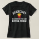 ¿Ejercicio? ¡, Oh I pensó que usted dijo las fritadas del suplemento! ¡La camisa hilarante es grande para las mujeres que odian resolverse en el gimnasio y aman comer las patatas fritas y los bocados de los alimentos de preparación rápida! Fondo oscuro con las letras y el envase blancos de fritadas deliciosas.
