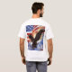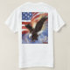 El vuelo Eagle con la bandera americana y la salida del sol en fondo sobre nieve capsularon las montañas
