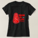 El color es muy bonito al natural, como la foto. El tejido es suave y de buena calidad. Sin defectos en el tintado, ni hilos sueltos o descosidos. Bien la impresión. Los bordes de las letras y el dibujo son nítidos, y el color contrasta muy bien con el de la camiseta.