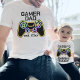 Diseño de personalizable "papi's gamer friend" (amigo de juegos de papi) para hacer juego con los trajes de un padre y un niño con un controlador de juegos retro de neón falso, encontrar una camiseta "gamer dad dad" que coincida en mi colección "papi y yo diseñamos".