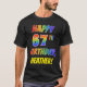 La parte delantera de este divertido, colorido y emocionante diseño de camisas con temática de cumpleaños muestra el mensaje "FELIZ CUMPLEAÑOS 67" con letras y dígitos que tienen un arcoíris multicolor como patrón gradiente, y un nombre personalizado de color amarillo. Una camisa divertida y feliz como esta puede ser usada por los asistentes a una fiesta de cumpleaños que se lleva a cabo para celebrar el cumpleaños 67 de alguien. [~Z0000392]