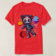 El color es muy bonito al natural, como la foto. El tejido es suave y de buena calidad. Sin defectos en el tintado, ni hilos sueltos o descosidos. Bien la impresión. Los bordes de las letras y el dibujo son nítidos, y el color contrasta muy bien con el de la camiseta.