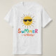 Las vibraciones de verano y la camiseta blanca de los hombres de diseño solar son perfectas para ayudarte a entrar en el hermoso modo de vacaciones. Este diseño colorido presenta letras de colores vibrantes en estilo caligráfico.