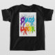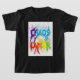 Este diseño de camiseta muestra el texto "El caos es una escalera" en un arcoiris de colores, con un fondo de brochas texturadas y salpicaduras de pintura. El texto está escrito en un tipo de letra tipo graffiti, y los colores son audaces y llamativos. El fondo es un gris claro, con un patrón de pinceles coloridos. El efecto general es el caos y el desorden, que se refleja en el mensaje del texto.