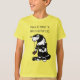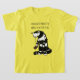 Camisas para niños amantes del chocolate con el texto de personalizable "El chocolate hace del mundo un lugar mejor". Es genial para un amante de los gatos porque tiene un gracioso ilustracion de tinta de un extraño personaje de gato al que le encanta el chocolate sobre un fondo amarillo personalizable. Se nota por la baba del gatito a rayas cayendo sobre el bloque de delicioso milagro dulce que está sosteniendo.