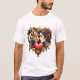 El corazón del desierto oculto, un tigre majestuoso y el perfil de una mujer están artísticamente mezclados. Ambos motivos están empotrados en un marco elegante en forma de corazón que resalta el ambiente romántico. El marco está ricamente decorado con delicados motivos florales que envuelven armoniosamente a su alrededor, dándole un toque divertido e imaginativo. Entre las flores hay un corazón rojo brillante, que simboliza el amor y la pasión.