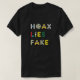 Hoax Lies Fake incluye una serie de teorías de "conspiración" en el diseño. Creados con frustración por las mentiras y la propaganda estamos alimentados con gráficos para las dos torres, aterrizajes en la luna, pirámides iluminadas, energía eólica, píldora roja, signo del dólar, CCTV y JFK 1963.