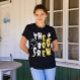 El color es muy bonito al natural, como la foto. El tejido es suave y de buena calidad. Sin defectos en el tintado, ni hilos sueltos o descosidos. Bien la impresión. Los bordes de las letras y el dibujo son nítidos, y el color contrasta muy bien con el de la camiseta.