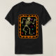 Marioneta de esqueleto para el Día de los Muertos en México con brillantes líneas naranjas y confeti.