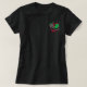 La camiseta de esta mujer es genial para cualquier tipo de portón trasero o fiesta de la raza con una bandera verde y una bandera con cuadros negros y blancos. El diseño de las banderas de cuadros está en la parte trasera del tee y una más pequeña está en la parte delantera de esta camiseta negra (hay otras opciones disponibles). Personaliza tu nombre, ubicación, negocio o conductor favorito o di felicitaciones. El diseño es una bandera de cuadros negros y blancos y una bandera verde con las palabras "El Fiesta empieza aquí" y "Ventilador de la raza #1". Las estrellas negras también están repartidas por todo el diseño. Puedes personalizar la camisa a otro color. Personalizable completo para su fiesta u otro evento. Este es un diseño original de Phyllis Dobbs.