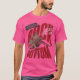 El color es muy bonito al natural, como la foto. El tejido es suave y de buena calidad. Sin defectos en el tintado, ni hilos sueltos o descosidos. Bien la impresión. Los bordes de las letras y el dibujo son nítidos, y el color contrasta muy bien con el de la camiseta.