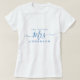 Futuro Sra. moderna camiseta de nombre personalizado con el texto Sra. en caligrafía de escritura azul elegante. Simplemente agrega el nombre de la novia para que sea y tendrás el regalo perfecto para la ducha de novia. Diseñado exclusivamente para usted por Happy Dolphin Studio.