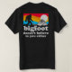 Gracioso Pie Grande Personalizado, no cree en ti ni en la camiseta. Un colorido gran pie está caminando por el bosque. Diseño en la parte posterior de la camisa.