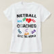 Una camiseta personalizable con entrenadores de netball cita regla y el diseño de posiciones de jugador.