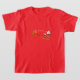 La camisa sport envuelta larga para los niños/muchacho con el cuello barco se muestra en rojo con un Santa lindo y la impresión de Rundolph, texto lee "ho ho ho".