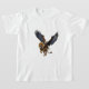 Este diseño de camisetas presenta una imagen impactante y poderosa de un águila que se esparce por los cielos con un león en sus garras. El tamaño y la fuerza del águila son impresionantes. Sus ojos agudos y agudos transmiten un sentido de determinación y ferocidad a medida que desciende sobre su presa. El león no es rival para el pájaro de la presa. En general, este diseño es una representación poderosa y sorprendente de la batalla de larga data entre dos de las criaturas más emblemáticas y majestuosas de la naturaleza. Recuerda a la feroz belleza y fuerza del águila y del león.
