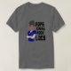 El color es muy bonito al natural, como la foto. El tejido es suave y de buena calidad. Sin defectos en el tintado, ni hilos sueltos o descosidos. Bien la impresión. Los bordes de las letras y el dibujo son nítidos, y el color contrasta muy bien con el de la camiseta.
